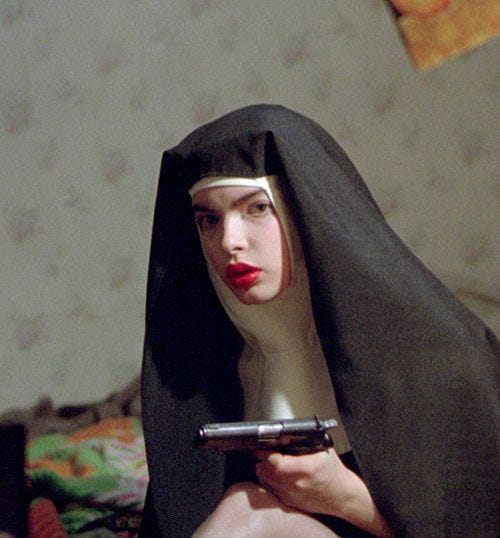 on a basic level, it’s about killer sorority girls. on a deeper level, it’s about the male weaponization of the “manic pixie dream girl” trope and a group of women’s quest to reconquer this narrative. and on a visual level, the initial image that fixed itself in my mind and became the basis for this story—a house of nuns serenely sowing the land of their backyard—came from a real experience i had in college. during my senior year, my best friend lived in an off-campus house (with fellow sorority sisters, no less) which, unbeknownst to me at the time, neighbored a home of nuns. one day, we decided to go on a shrooms trip; before traversing into the woods next door to explore nature and expand our minds, as twenty-year-olds are apt to do, i was in the backyard, waiting for her, when i turned to my right and saw three nuns next door, shoveling soil.