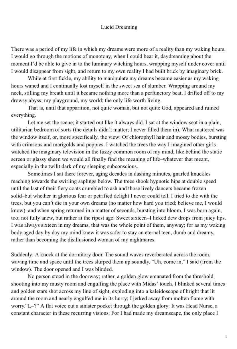 much like my dreams, this story has faded in and out of my consciousness and developed dizzyingly over the past two years. i first began writing what would come to be “lucid dreaming” in the spring/autumn of 2023. like i discussed in my post showcasing some of my poetry from that period, it was a very disorienting time. my grip on reality, on understanding what was real and what wasn’t, seemed to be slipping through my fingers despite my best attempts to sink my claws into the truth.